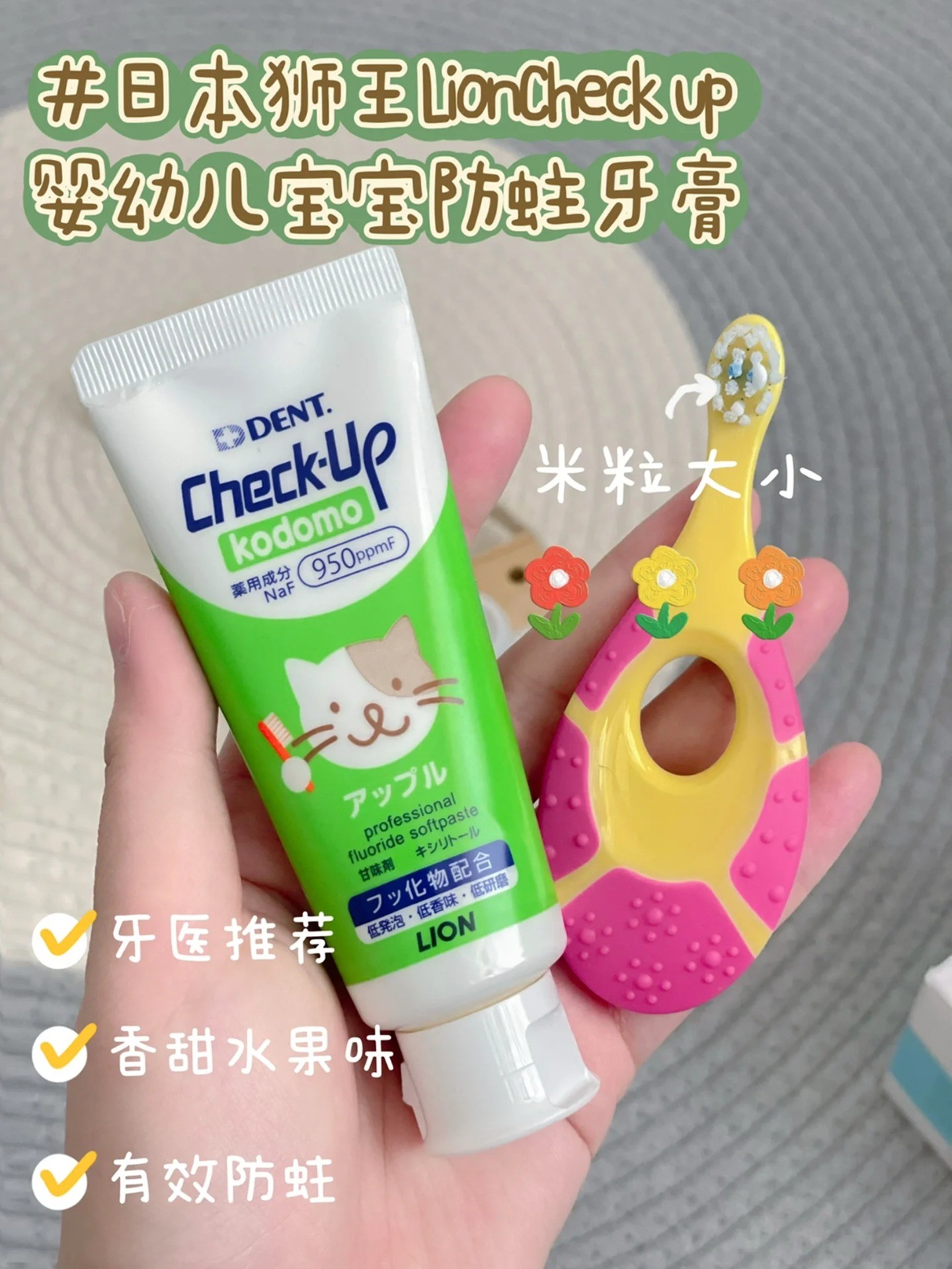 日本 狮王 婴幼儿童 宝宝 防蛀含氟 牙膏 60g 6岁+ 苹果味