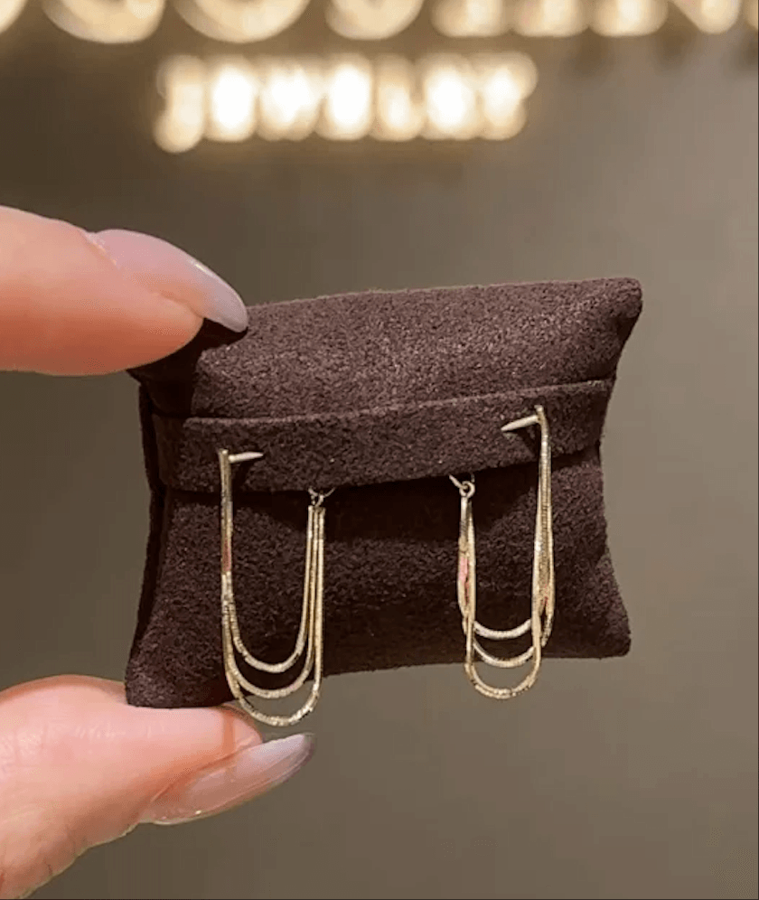 日本 cocoshnik 三连 蛇骨链 流苏 耳环 10k