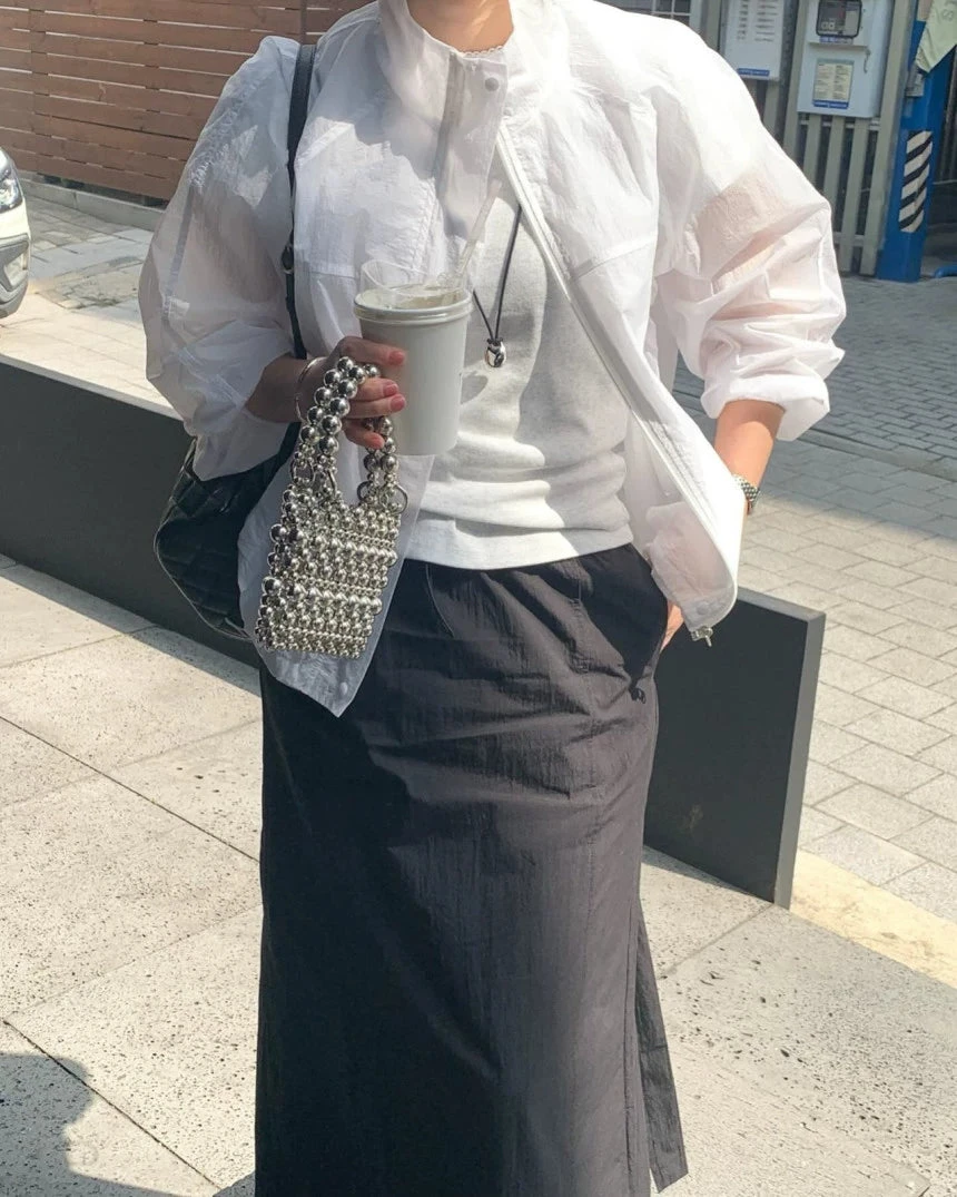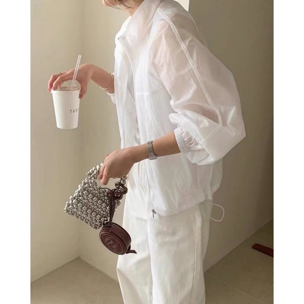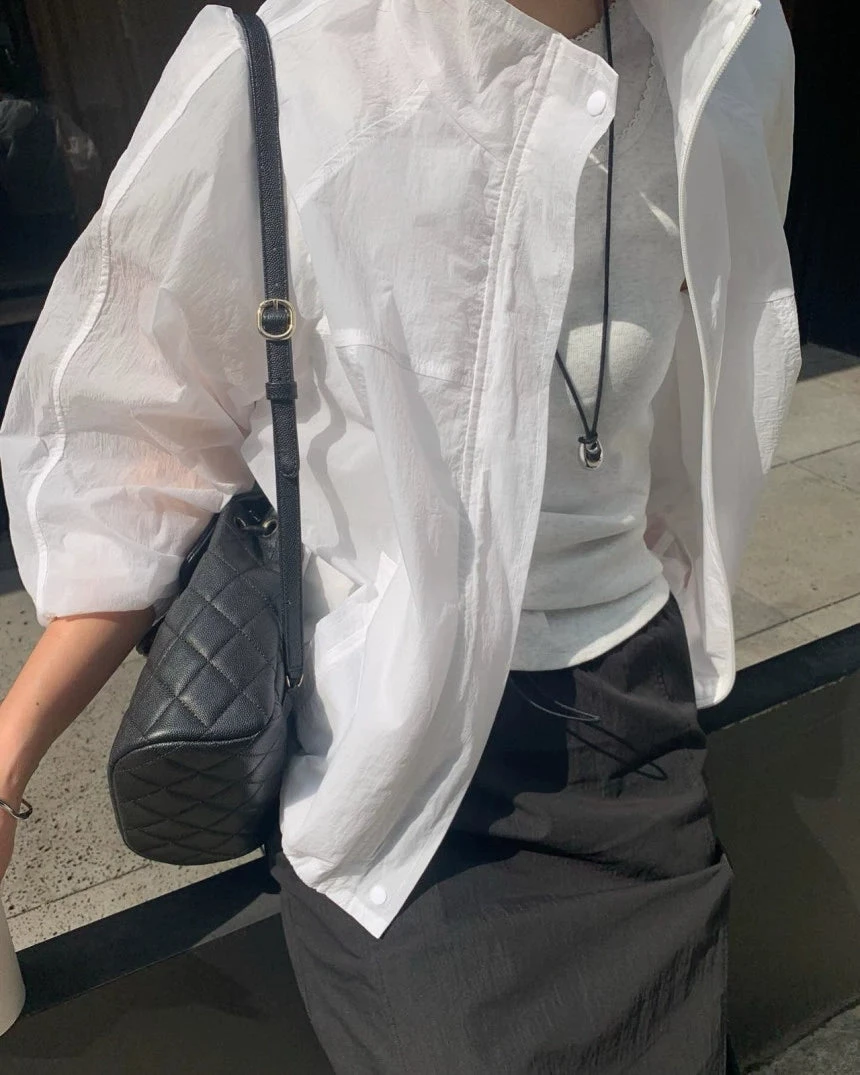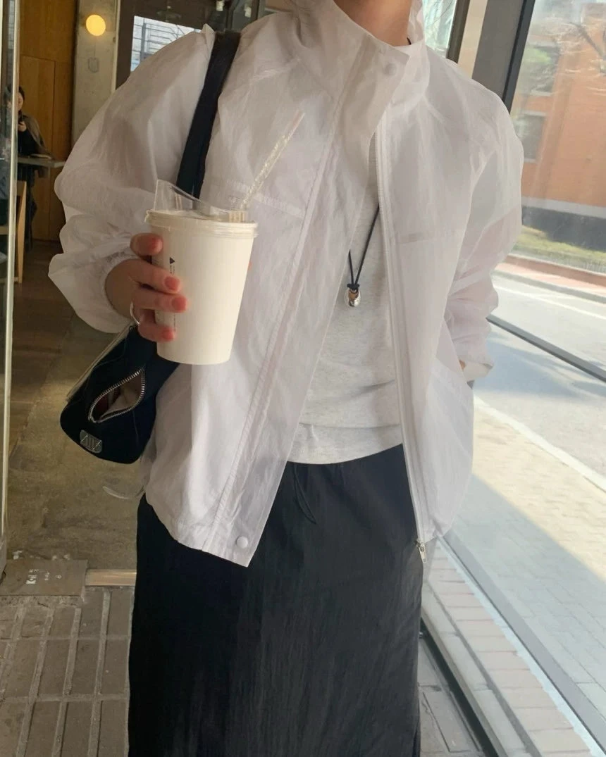 韩国女装 下摆可抽绳轻薄防晒夹克立领拉链外套 (限时7折 加入购物车自动减动减