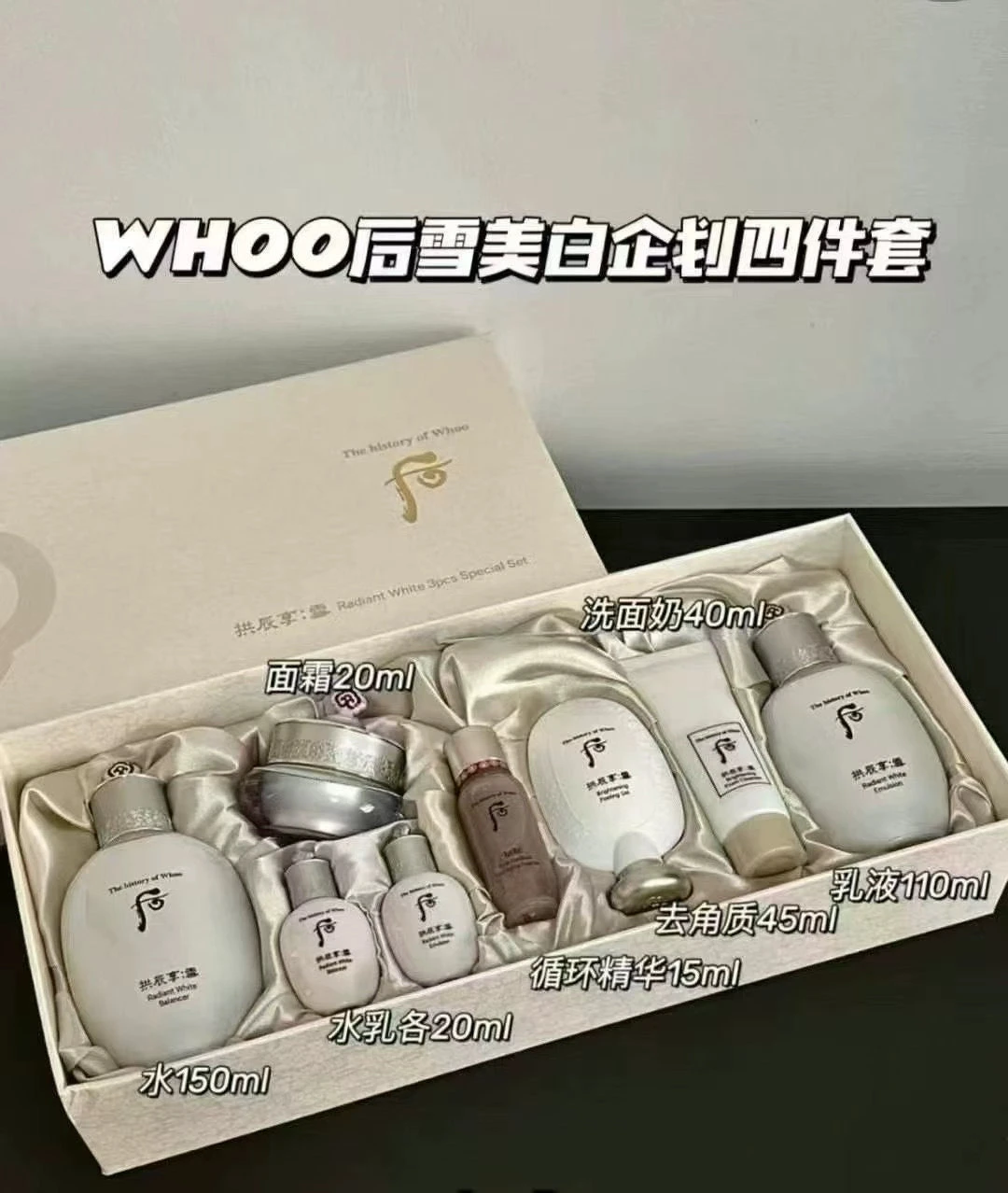 韩国 后 拱辰享 雪美白 三件套装 保湿 提亮 淡化 斑点 去黄 护肤套盒